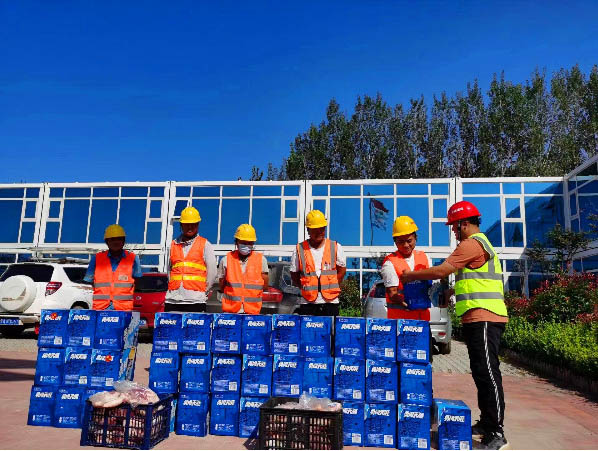 針對近日項目部所在地區的疫情情況,為做好疫情防控工作,加強工會對職工的人文關懷、心理關愛,讓職工真正感受到“家”的溫暖,匯通公司分會為項目部發放一次性醫用口罩6000個、84消毒液120桶、75%醫用酒精150桶、自動噴霧機4個、小噴壺20個、紅外線測溫槍10個、廢棄口罩收容器2個,防護服12套,防護面罩10套,醫用一次性手套200副,鞋套20雙,洗手凝膠30瓶,為大家架起了一道暖心、有效的防護屏障。同時,為了確保一線人員每日營養攝取充足,分會采購了排骨、豬蹄等食材,有助于一線職工保持充沛的精力,提高免疫力、增進身體健康,共同打贏這場疫情防控阻擊戰。 在保障防疫物資充足的同時,項目部進一