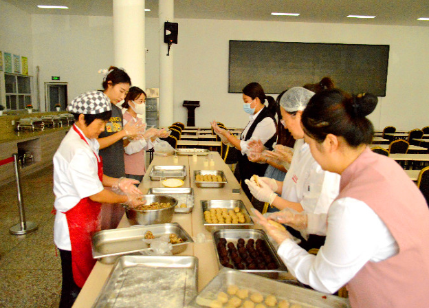 月到十五分外明,人到中秋情更濃。在中秋節前夕,匯通公司團支部積極組織青年職工開展“團圓迎中秋,巧手做月餅”中秋節主題活動。 活動得到青年職工的積極響應,在面點老師的悉心指導下,青年職工現場體驗了月餅的制作過程。在拿到原料后,大家躍躍欲試,紛紛按照流程,滾圓、壓模、脫模,“大展身手”忙得不亦樂乎,在一雙雙巧手的揉捏下,一個個圓圓的月餅團出現了,一會兒功夫就做了滿滿幾大盤月餅。現場熱火朝天,大家一張張綻放的笑臉,手里一塊塊的月餅,處處流露著收獲的喜悅。 “團圓迎中秋,巧手做月餅”活動讓青年職工感受到了節日的氛圍,進一步了解了中國的傳統節日文化,一搟、一推、一包、一揉、一壓,一烤都浸透著