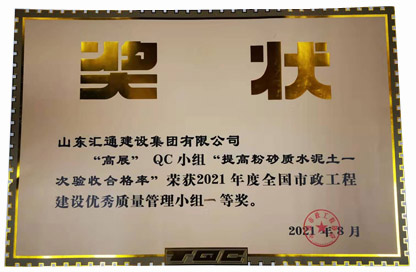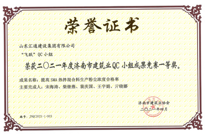 山東匯通建設集團有限公司于2003年9月注冊成立,擁有住房和城鄉建設部頒發的市政公用工程施工總承包壹級資質,橋梁工程專業承包貳級資質。榮獲“中國施工企業管理協會AAA信用等級”稱號,是山東省市政公用工程施工知名企業、濟南市市政公用工程施工骨干企業。公司于2008年11月首次通過質量、環境、職業健康安全一體化管理體系認證。現已順利通過五次認證審核。