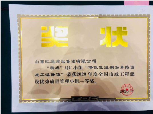 近日,由山東匯通建設集團有限公司組建的“飛躍”和“精進”QC小組參加了中國市政協會舉辦的2020年度全國市政工程建設優秀質量管理評比交流會,并在100多個參會小組中脫穎而出,雙雙榮獲全國市政工程建設優秀質量管理小組一等獎。 此次QC評比交流會中,山東匯通建設集團有限公司組建的“飛躍”QC小組發布的“降低瀝青混合料生產燃氣消耗量”和“精進”小組發布的“降低低溫期瀝青路面施工溫降值”兩個課題,在該小組成員努力及公司領導和技術質量部的指導之下,按時提交了此課題的活動成果,并在發布會上發揮出色,綜合評分名列前茅,為公司爭得榮譽。 此次成績的取得,正是源于項目部員工日常工作的積累,對細節的把握和