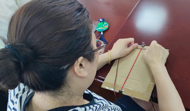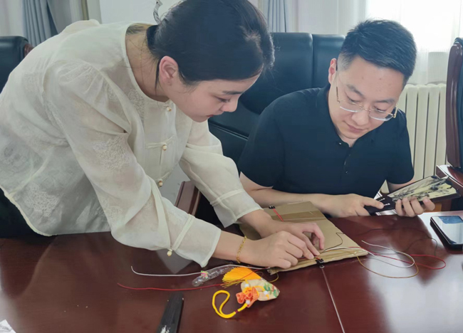 五色絲線系臂、佩香囊是端午節(jié)傳統(tǒng)習(xí)俗之一。在專業(yè)老師的指導(dǎo)下,細(xì)細(xì)的彩線在職工們的手指間飛舞,變成了手腕上一條條漂亮的五彩繩。