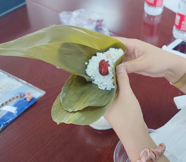 最后一個環(huán)節(jié)包粽子,提前泡好的糯米、粽葉、大棗、粽線等材料,職工們在老師的指導(dǎo)下互幫互學(xué),卷幾片粽葉、抓一把糯米、放一顆紅棗,雖然很多職工是第一次包粽子,但大家按照步驟一步一步操作,包的是有模有樣,樂在其“粽”。活動現(xiàn)場歡聲笑語、其樂融融。