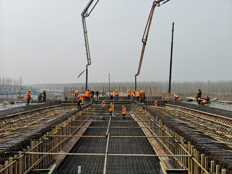 沭陽縣城區(qū)快速路二期工程威海路(臺(tái)州路-義烏路)標(biāo)段,全長(zhǎng)4.162km。起點(diǎn)順接現(xiàn)狀威海路,向東沿沂南河大堤至義烏路后折向南,終點(diǎn)位于蕭山路交叉口。主線采用雙向六車道,兩側(cè)地面輔道為雙向4車道,主路通過義烏路、慈溪路上架橋連接,高架橋長(zhǎng)1.4km。主要施工內(nèi)容:道路工程、橋涵工程、排水工程、交通工程、照明工程。